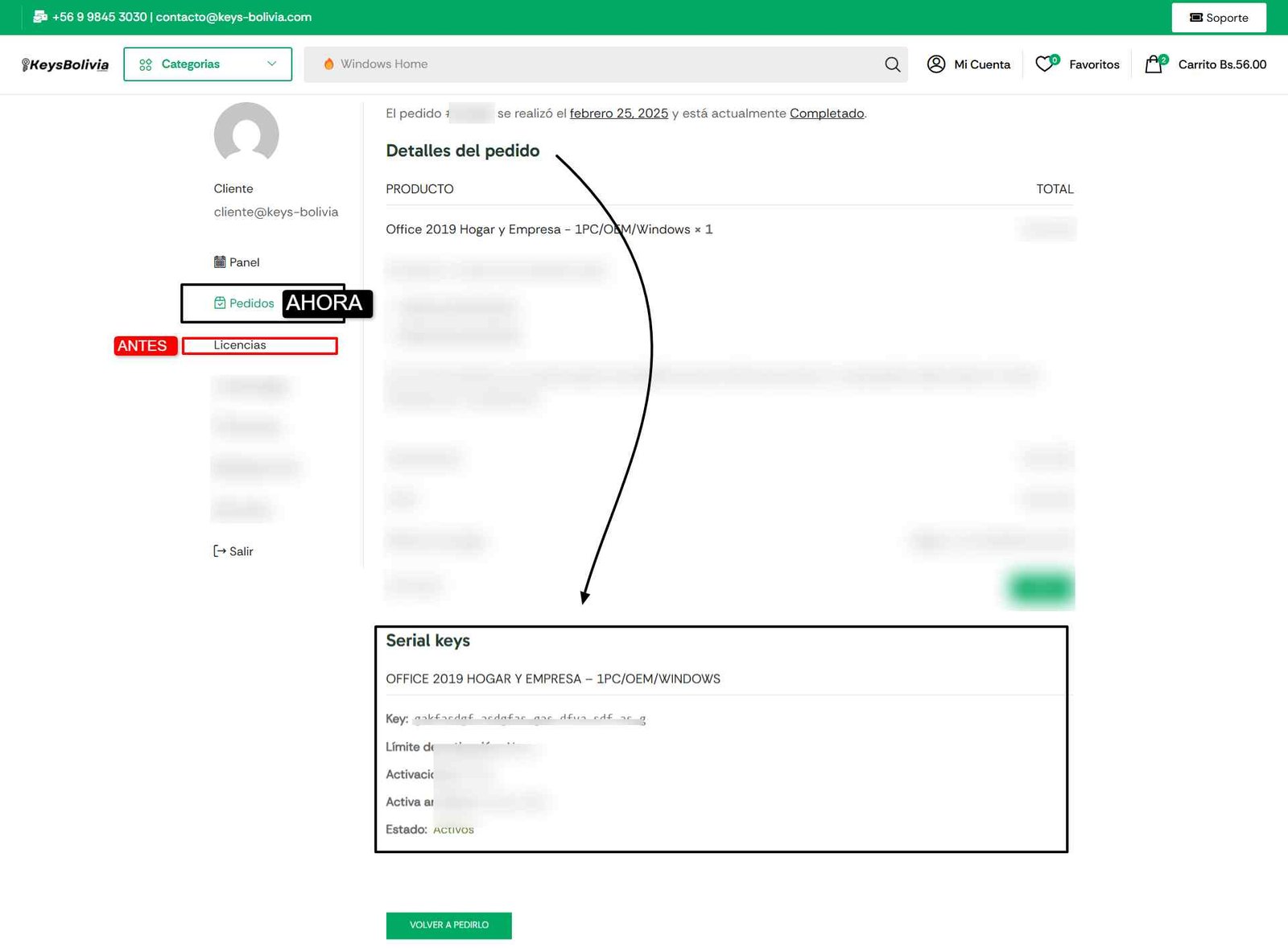 A partir del 1 de abril, algunos pedidos ya mostrarán sus claves en una nueva sección dentro del pedido.